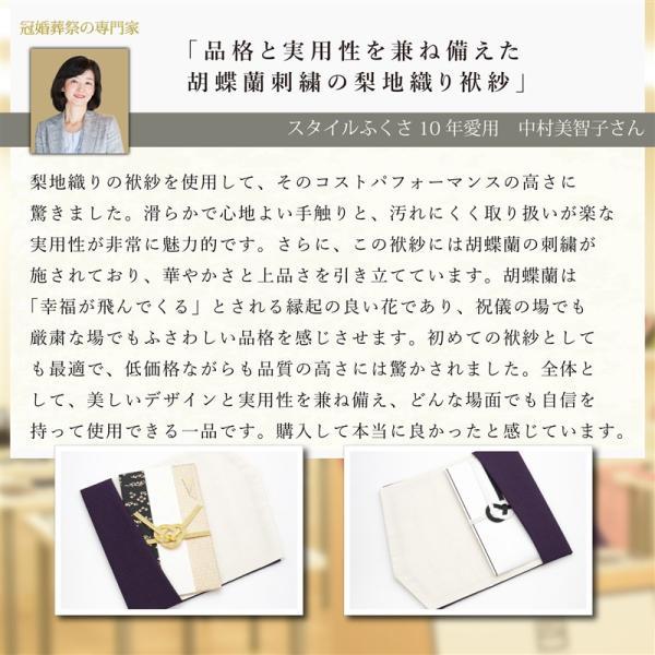 梨地織りふくさは、日本の伝統的な美しさを象徴する逸品です。熟練の職人による手作りで、一つ一つに個性と温かみが宿っています。梨地織は、梨の表面のようにザラザラとした光沢のない質感が特徴で、控えめな中にも品格が感じられる織り方です。このふくさには、自社で繊細に施された胡蝶蘭の刺繍があしらわれています。胡蝶蘭は、その美しさと気品から、結婚式やお祝いの場など、特別なシーンにふさわしい花とされ、「幸運を呼ぶ」を象徴する花でもあります。また「永遠の愛」といった意味を持つため、故人への尽きることのない愛や敬意を表す場面にも適しており、慶弔どちらのシーンでもお使いいただけます。素材には高品質なポリエステル100%を採用し、耐久性に優れ、汚れも落ちやすくお手入れが簡単です。サイズは約W200×D5×H125mmと、すべて日本国内で生産され、伝統的なふくさづくりの技術と現代的な品質が融合した製品です。