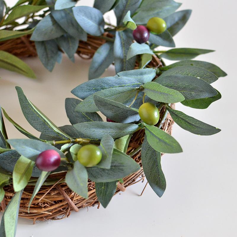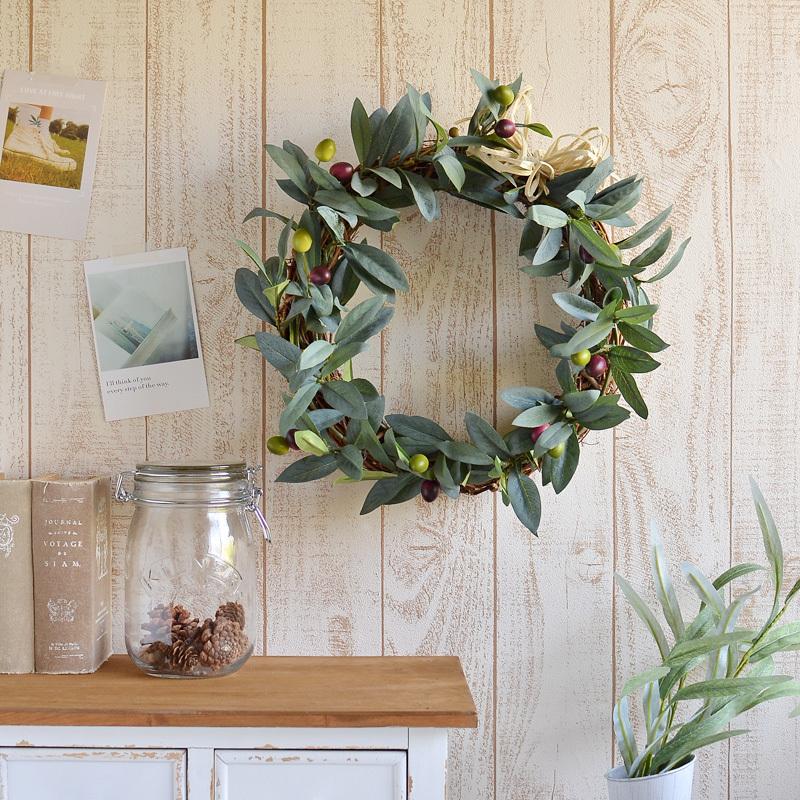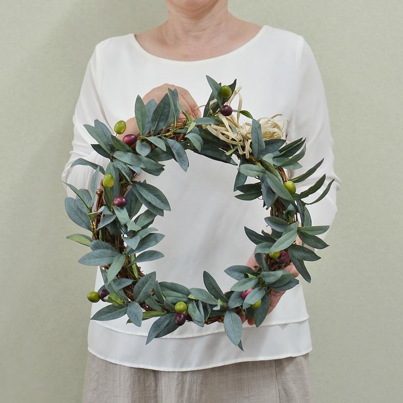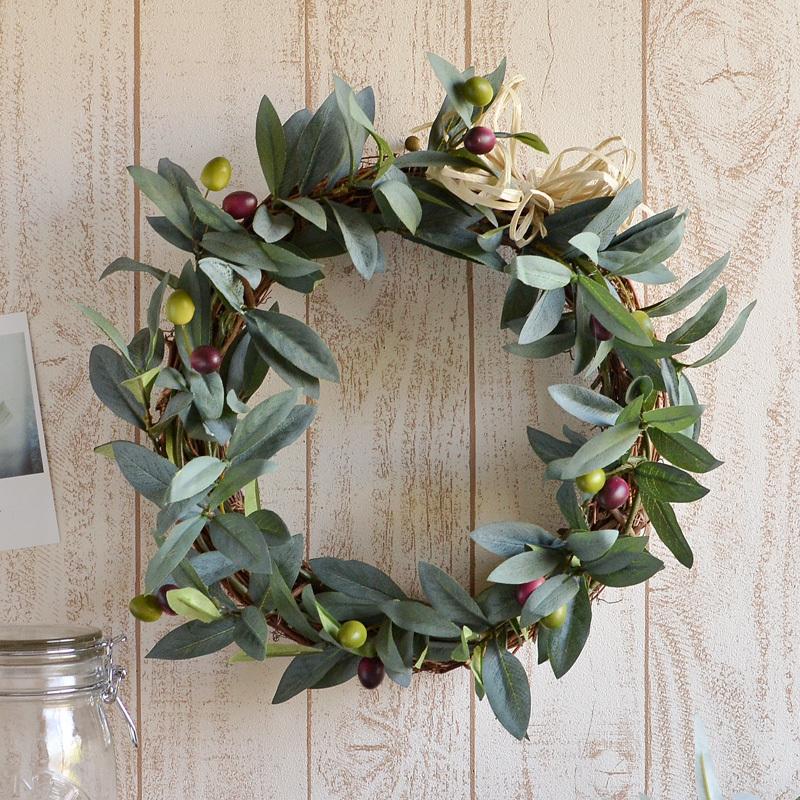 インテリアグリーンとして人気のオリーブをリースにしました。