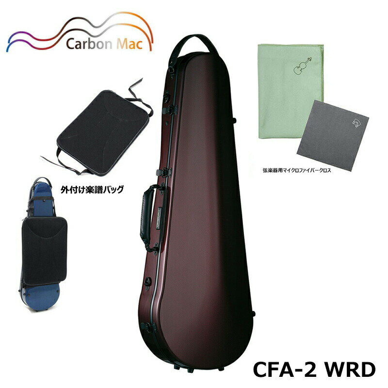 【外付け楽譜バッグ(AB-201)、弦楽器用クロス(グリーン)セット】カーボンマック CFA-2 WRD スリム ワインレッド カーボンファイバー製 ビオラケース