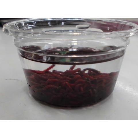 生きてる赤虫 約10g 約200匹以上います、 写真は約5gパック つりえさ 手長エビ、タナゴ、フナ、ハエ、ウグイ、など 小さい魚に対応してます。 針に刺しにくいので昔は、切った大根の上に赤虫を置いてそのまま針に刺してました。 観賞用淡水魚のエサとしても使えます。 カップのまま冷蔵庫で保管してください、死んだ赤虫を取り除いて、毎日水を代えれば2週間以上生きています。 *発送は発泡スチロールに保冷材を入れて普通便で発送いたします。