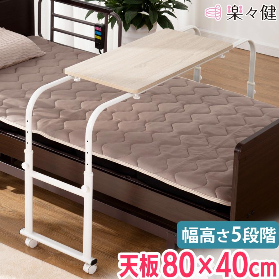 楽々健 キャスター付きベッドテーブル 「ラファミリア ビストロ」 高さ・幅5段階調整 天板80×40cm 介護 伸縮式 【送料無料】