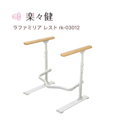 トイレ 手摺り 楽々健 ラファミリア レスト ホワイト 幅69×奥行49.5×高さ61〜66cm rk-03012 | 3段階調整 トイレ 立ち上がり 補助 介護 置くだけ トイレ手すり置き型 後付け おしゃれ 工事不要 簡単組立 シニア サポート 天然木 蓄光材 高齢者 お年寄り手すり 手すり