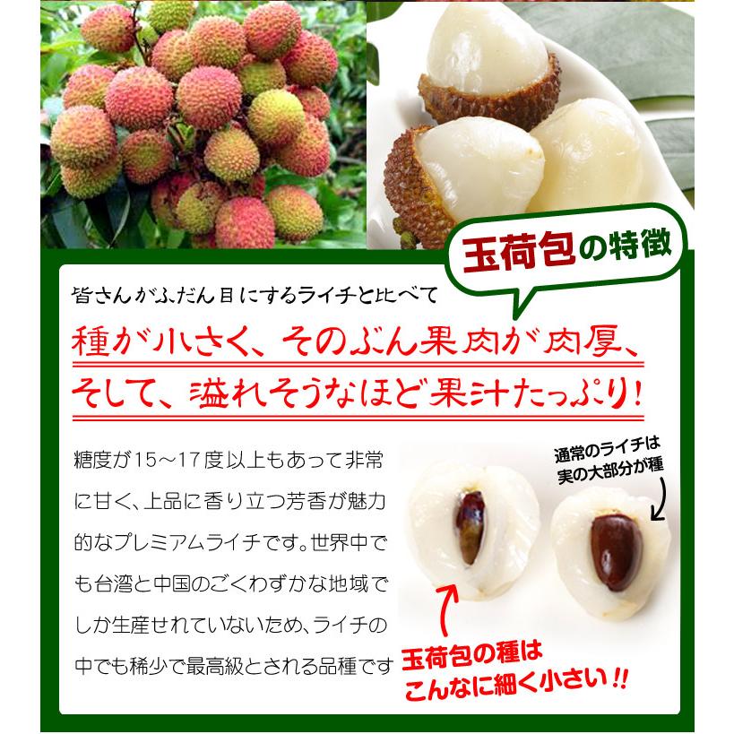 ●商品情報:台湾ライチの中でも最高級品種の玉荷包は、種が小さくプリッと肉厚の果肉と、上品に香る甘〜い果汁が溢れ絶品!●産地:台湾●規格・サイズ:-●入数の目安:1kgあたり24〜34粒●配送形態:段ボール箱●配送温度:冷蔵便●備考:●送料:通常配送:送料無料北海道・沖縄:発送不可