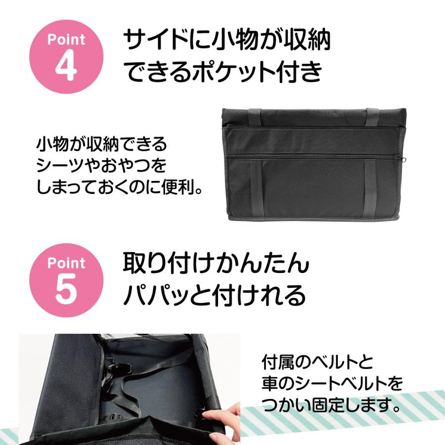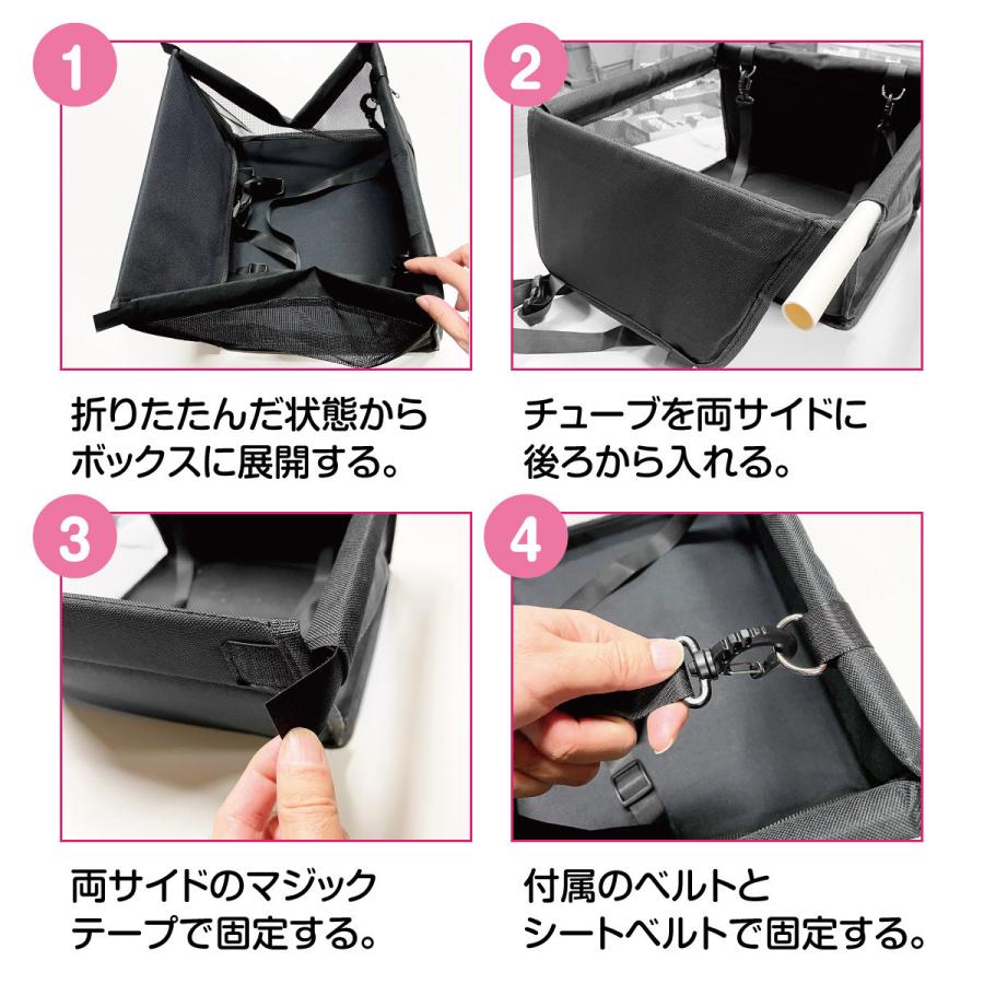 【取り付け簡単!】付属のベルトと車のシートベルトをつかい固定します。