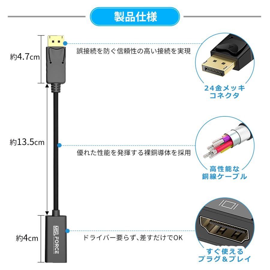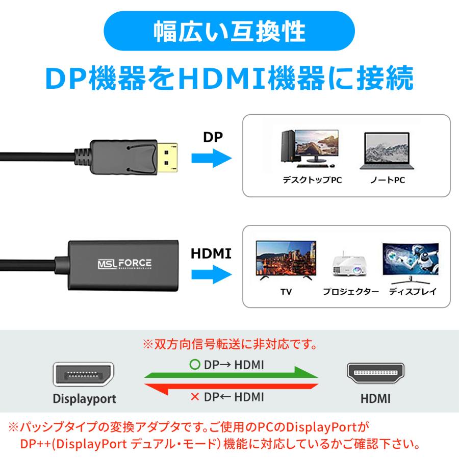 安心の日本企業 適格請求書発行可 送料無料 Displayport HDMI 変換アダプタ 1080p フルHD 1920×1080 4K 60Hz 3840×2160 高解像度 金メッキ 単方向 音声対応 DP to HDMI変換ケーブル