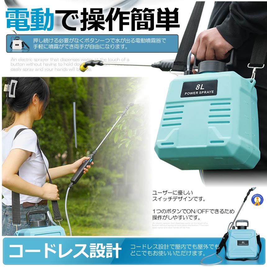 押し続ける必要がなくボタン一つで水が出る電動噴霧器で