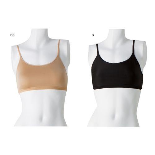 伸縮・吸水・速乾性に富んだスポーツアンダーウエア素材、プログレスキン(R)を使用。激しい動きにもフィットするのでたるみにくく、素肌感覚で着用いただけます。別売のバストカップを入れることのできるカップポケット付き。[サイズ]L/M/S/JO