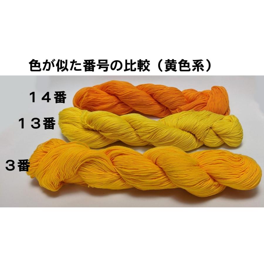【材質】綿100%・日本製【長さ】約370m(4本撚り)【重さ】40g強レモンイエローかクリーム色のような、やや薄い黄色です。※単色の色糸は細糸のみです。 (20番手4本撚り)【色止めについて】染色ロットごとに水洗いによる色止め加工のテストを行っておりますが、100%完全な色止めを保証するものではありません。天然の糸を使用しているため、どうぞご了承ください。