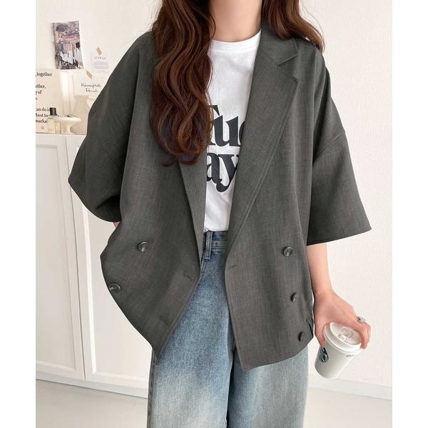 商品名:上品な大人カジュアルを叶える。テックリネン素材ダブルテーラード衿シャツジャケット