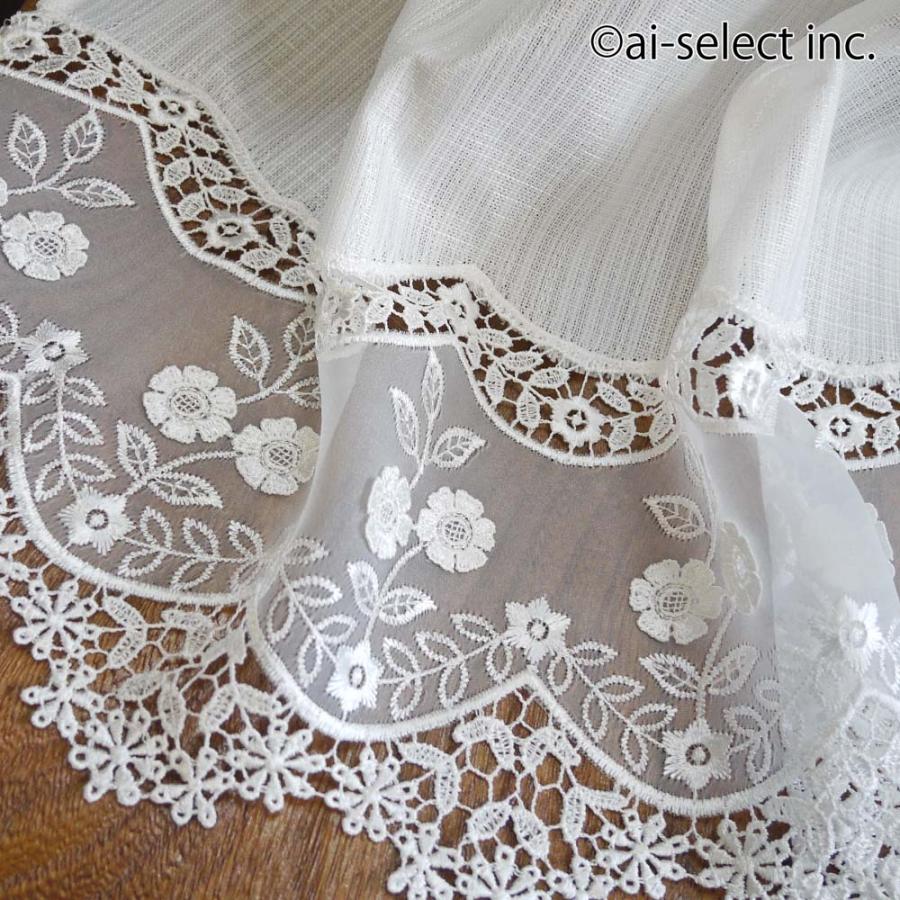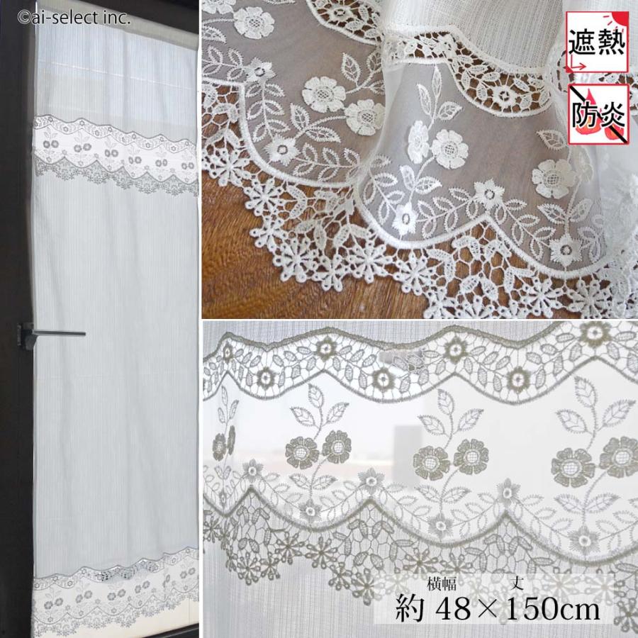 【商品詳細】■サイズ:約 横幅48cm×長さ 約150cm 1枚多少のサイズ誤差は、ご了承願います。■素材:ポリエステル100%★殆ど真っ白に近い色の遮熱生地を使用し下部に透け感の有るオーガンジー生地をベースに刺繍とギュピュールレースをふんだんに施しています。(生地部分、防炎・遮熱加工等の機能付き)■ご家庭でお洗濯可能です。