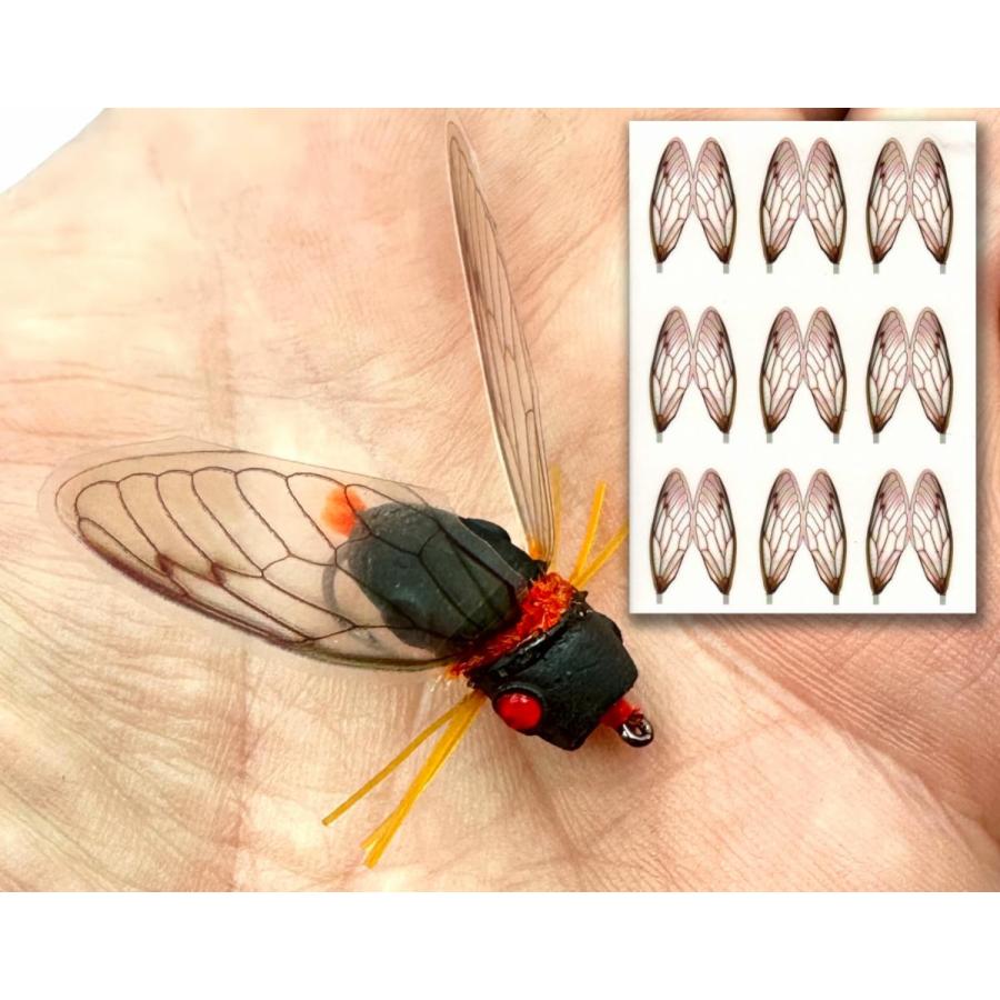 24年セミの年にセミマテリアルやセミフライのタイイングが注目されています。フォーム(もしくはDoubleBarrelPopperBody 黒 )などでボディを作りシケーダウイングを差し込んだりすればリアルなセミフライが完成します。38mm 9セットFlymenのマテリアルキットに入っているセミの羽と同じものです。