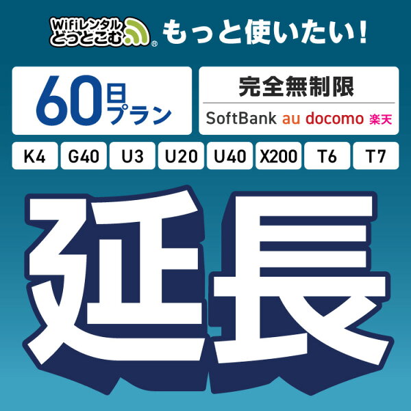 【延長専用】 SoftBank 完全無制限プラン T6 T7 U3 K4 G40 wifi レンタル 延長 専用 60日 ポケットwifi Pocket WiFi …