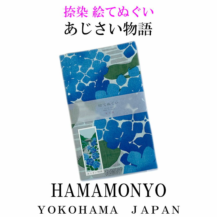 捺染絵てぬぐい あじさい物語 横浜濱文様【メール便対応可】 紫陽花柄手拭い ちょっとした贈り物に プチギフト 初夏の手ぬぐい