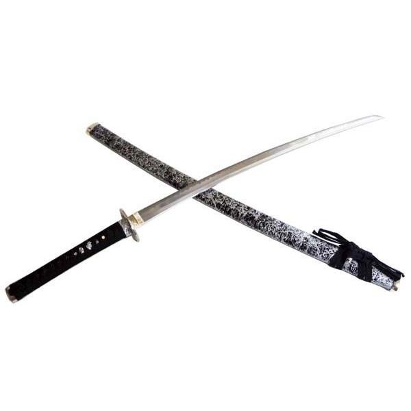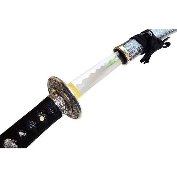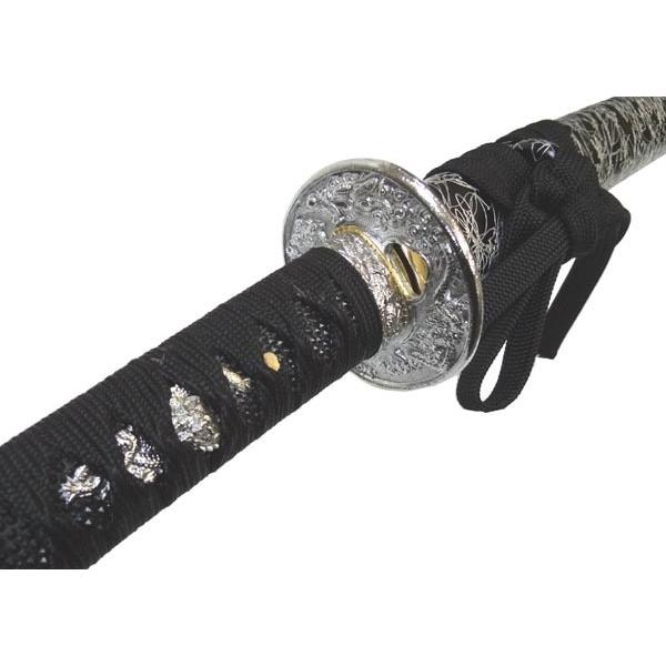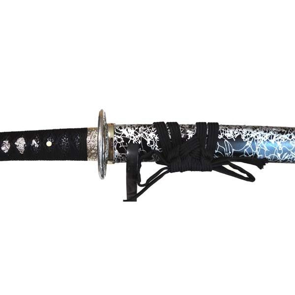 黒地の鞘に銀の雲線が走る銀色の鍔の美術刀黒銀雲!