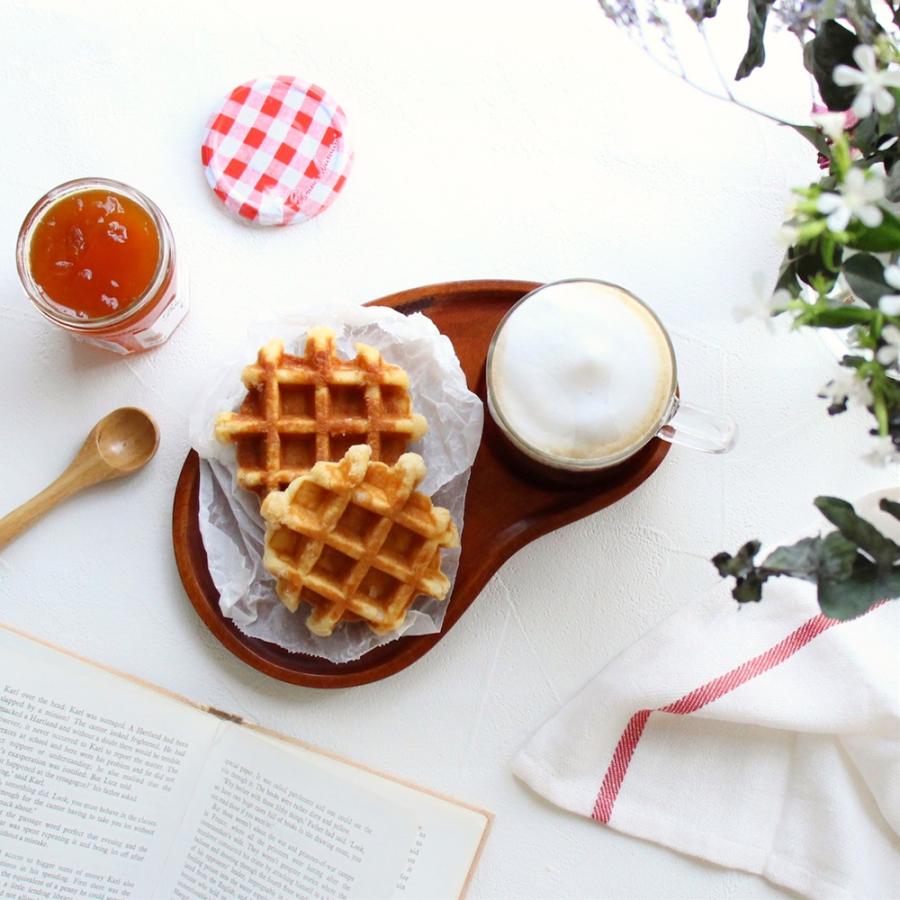 コップ、スープカップの置場が付いた木製トレイです。かわいいデザインのトレイに飲み物やスープも一緒に配置できます。朝食、ちょっとした休憩、ちょい飲みのセットなどにいかがでしょうか?コップ置場はくぼんでおり、ズレにくくなっているのでキャンプなどのアウトドアシーンにも最適です。【素材】ブナの木【表面】ウレタン塗装【サイズ】25×15cm【付属品】オリジナルクロス
