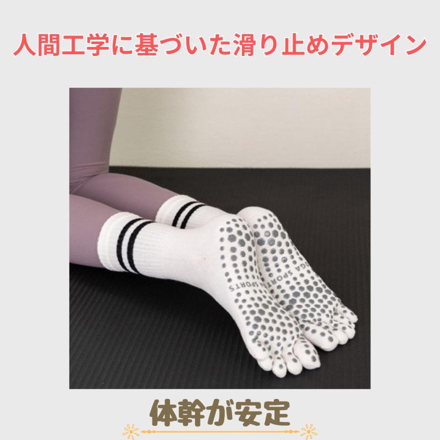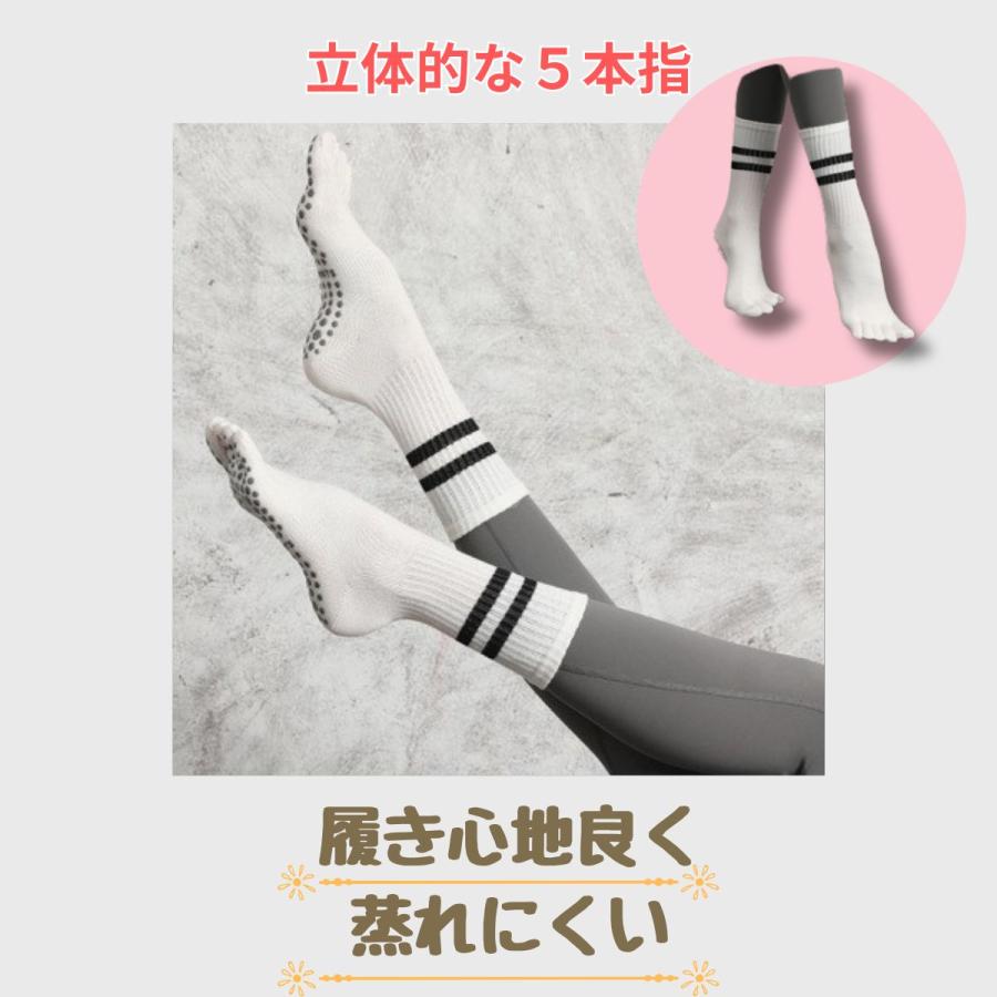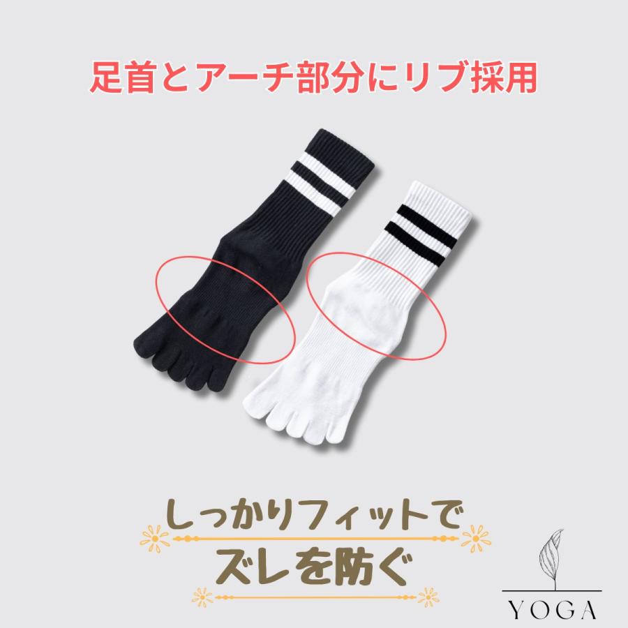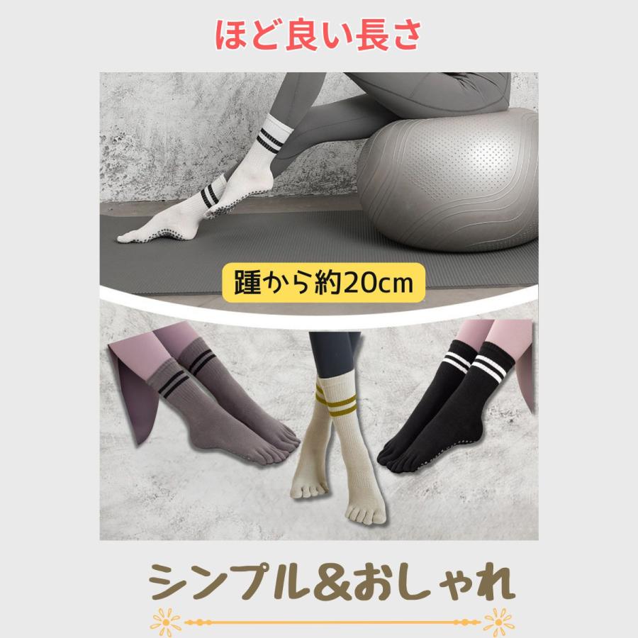 ほど良い長さの5本指ヨガソックス。2本ラインのシンプルでおしゃれなデザイン。