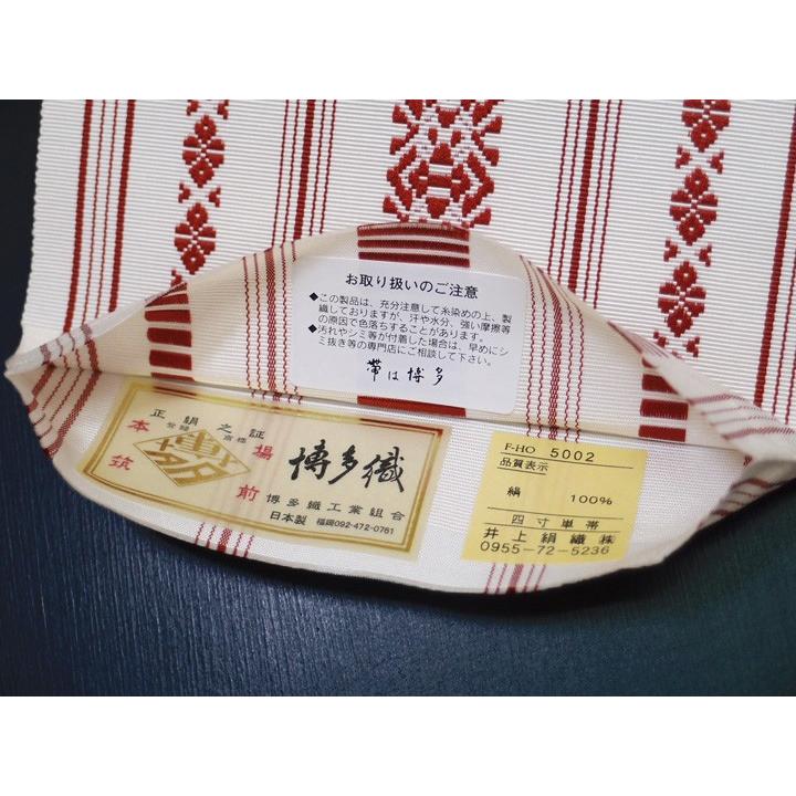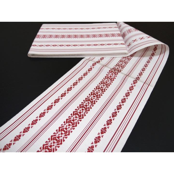 浴衣帯 半幅帯 博多帯 花火大会 お祭り 夏のお出かけ 夏 本場筑前博多細帯 浴衣単帯 浴衣帯 オフホワイト 赤 現品限り e531