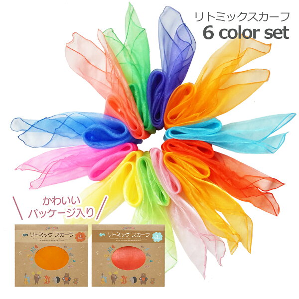 リトミックスカーフ 6色セット 60cm ほつれが少ない 色落ちしない シフォンスカーフ ダンス 幼児 子供 オーガンジー …