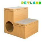 【2F】 【在庫有・即納】 ペットプロジャパン キャットステップ2段 爪とぎ2枚付き 猫 階段 段差 子猫 シニア猫 猫ハウス トンネル 簡単組立 HappyDays