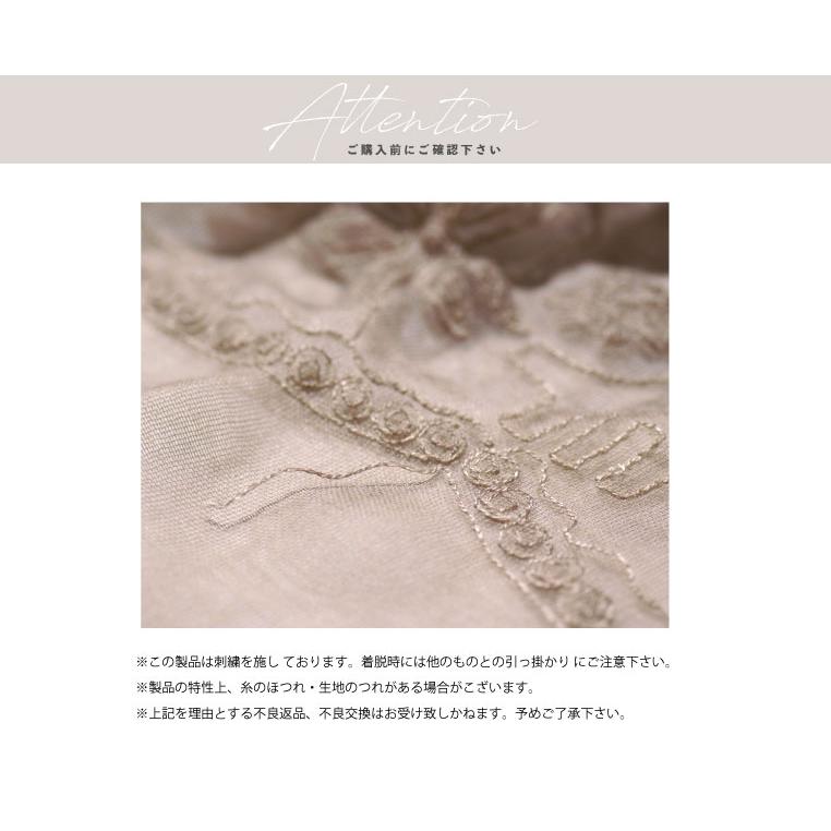 透明感あふれる薄手の生地に、さりげなく刺繍された