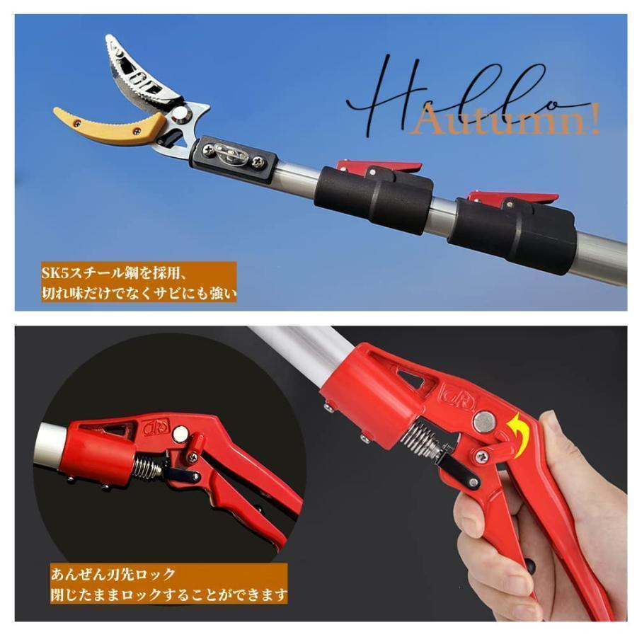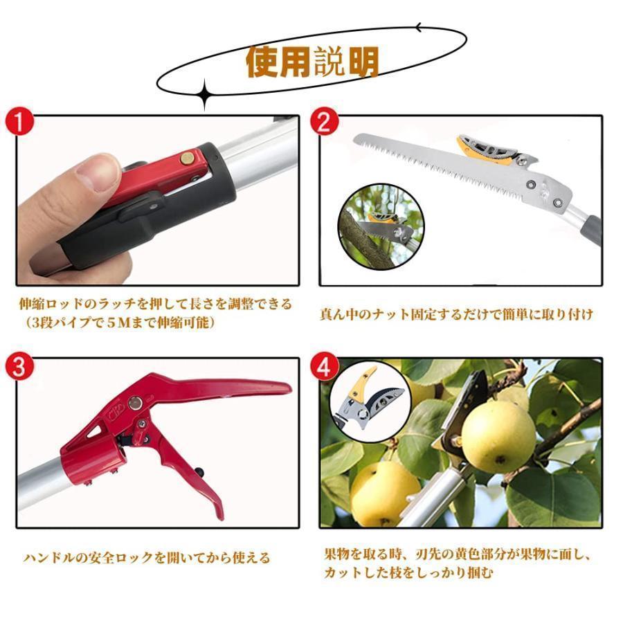 【伸縮式】2-3段階伸縮式で、最長5mまで伸ばすことができます、フルーツピッキング、家庭、果樹園、公園、庭園、高所の切断作業などに最適です。