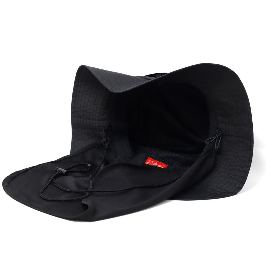 ノンコーティング耐久撥水・透湿素材のミニリップストップを使用した帽子です。ベンチレーションで通気性を高めている為蒸れにくい構造となり、タレ部分は水で濡らすことでひんやりする特殊素材を使用。紫外線から首もしっかり保護してくれるのがポイントです。