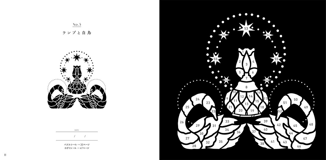 『ときめき』が、認知機能維持につながる。大人気切り絵作家 大橋忍氏の描き下ろし作品11点掲載1シールと台紙を準備台紙と同じ番号のパズルシール(1〜11)を準備します。台紙もパズルシールも、ミシン目で切り離せます。2同じ数字のシールを探す台紙の枠線の中にある数字と、同じ番号がふってあるシール(パーツ)を探します。シールはランダムに並んでいるので、集中力を養います。3あわせて貼る見つけたシールを台紙に貼ります。黒い背景とカラフルなシールのコントラストによる、美しい色彩を楽しみます。更新日:2025年08月12日