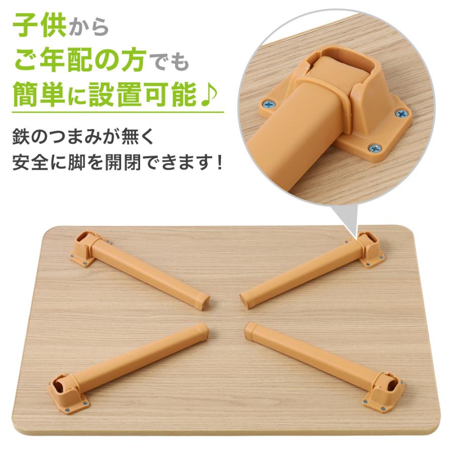 脚の付け根に、硬いロックピンが無く小さいお子様やご年配の方でも安全にストレスなく簡単設置、収納が可能です。