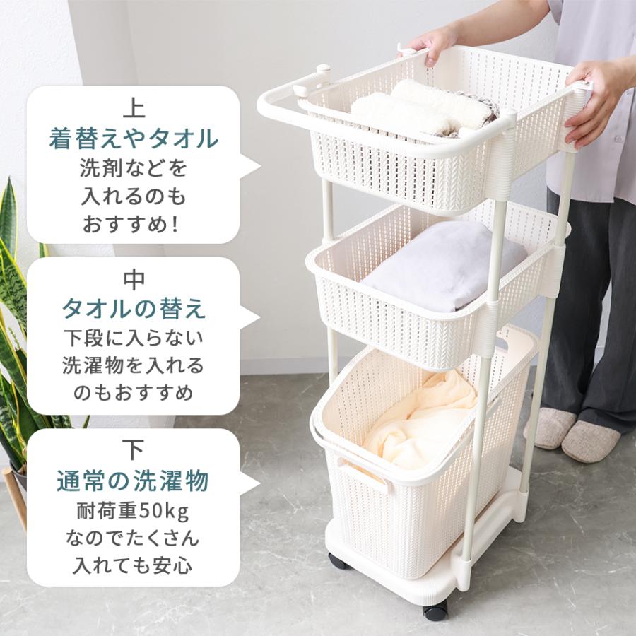 ( ランドリーバスケット ホワイト 3段 ランドリーワゴン ランドリー収納 洗面台収納 ランドリーラック ランドリーボックス おしゃれ 洗濯カゴ 大容量 脱衣カゴ 風呂 脱衣所 収納 収納バスケット 収納ボックス 一人暮らし 母の日 父の日 プレゼント ギフト 送料無料 人気 安い おすすめ)