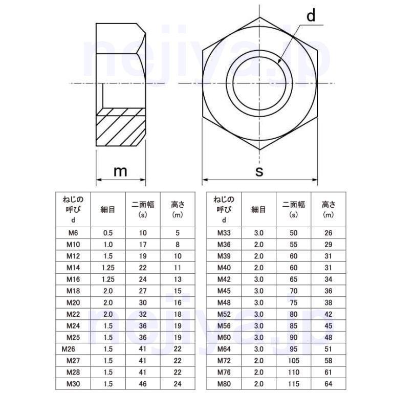 M16 細目ピッチP=1.25 ステンレス六角ナット※こちらの商品は特殊ピッチ(細目)です。並目や他ピッチとの組み合わせでは使用できません。おねじ類も同ピッチのものをご用意下さい。*発注単位に関する注意*当コーナーでは販売単位として「10本入りパック」等の表記をしておりますが「パック」とは、あくまでも発注数量の括りであり、各数量でパッケージされた商品が出荷されるわけではありません。例)10個入りパック X 3 で御注文の場合は10X3=30 より30個がワンパッケージになります。