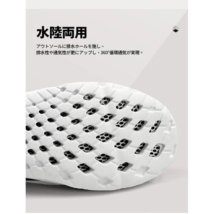 排水性:排水ホールとメッシュインソールなので、いつまでも水が溜まらない。アッパーも速乾、透湿生地で蒸れずに快適。