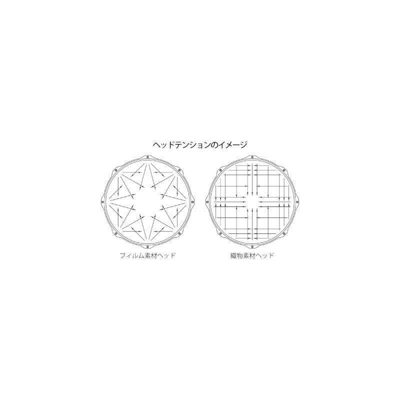 鉄の8倍の強度を持つと言われるアラミド繊維「テクノーラ」を採用することにより、フィルム素材のヘッドに比べ、中心部と周辺部のテンションの差が少なく、ヘッド全体で均質なサウンドが得られ、特にハイピッチ・チューニングでの音の詰まり感が少なく、伸びのある響きを維持することができます。