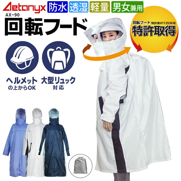 【P3倍 6/8〜24H】 回転フード レインコート レディース 自転車 リュック ヘルメット対応 AX-90 透湿 防水 軽量 メッ…