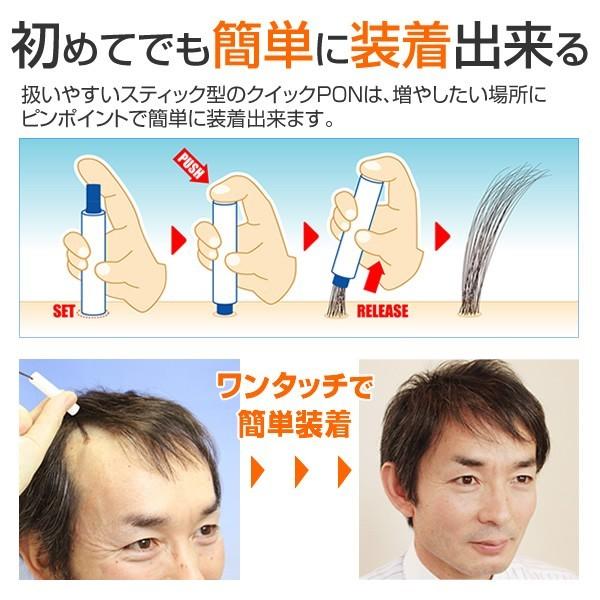 クイックPONシリーズは初めての人でも自分で簡単に装着できるスティック型の増毛です。増やしたいところだけピンポイントに増毛出来ます。