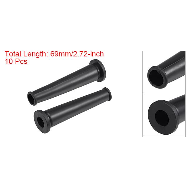 [サイズ]-全長: 69mm; 取付直径: 13 mm; フランジ内径: 9.5mm; フランジ外径: 20mm; フランジ厚さ: 2.8mm; 小端内径: 9mm; 小端外径: 12mm; 小端厚さ: 1.8mm; 10本 x ストレインリリーフコードブーツ</li></ul>