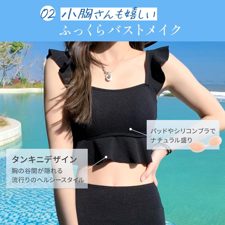 ■胸の谷間が隠れるタンキニは、パッドやシリコンブラでバストメイクが