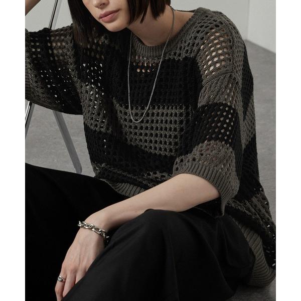 商品名:【Alfred Alex】ボーダーシアーメッシュオーバーサイズニット