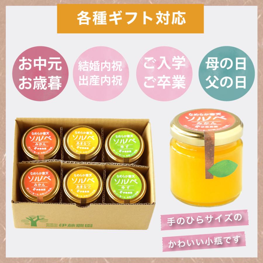【商品詳細】●内容量:85g×6個●原材料:柑橘、粗糖、寒天●容器:ガラスびん●容器の大きさ:直径6.1cm高さ5.4cm●箱の寸法:縦13cm×横19cm×高さ8.7cm●賞味期限:4ヵ月●保存方法:直射日光を避けて、冷暗所に保存。開封後お早めにお召し上がり下さい。日本一のみかん生産量を誇る和歌山県でみかん関連商品の通販売上No.1!【東京商工リサーチ調べ】