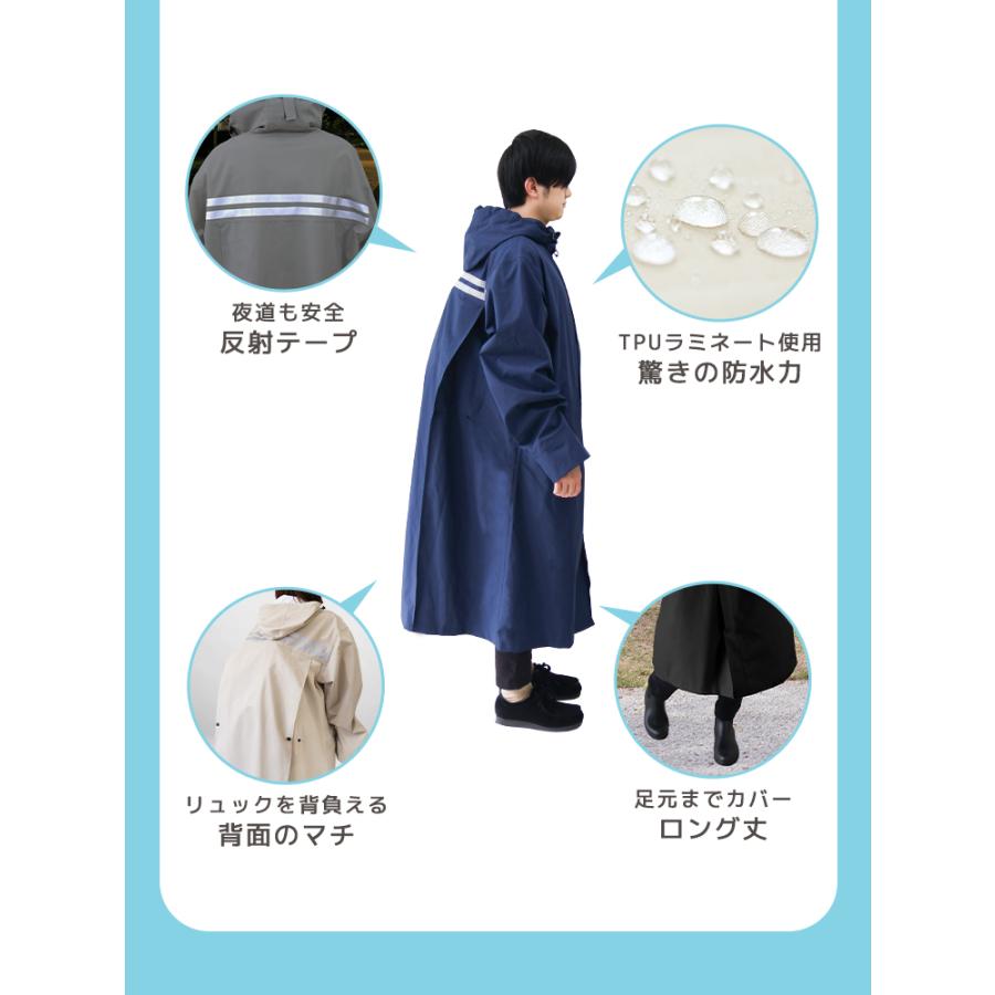 ( 梅雨 通勤 通学 自転車 レディース メンズ 防水 撥水 レインコート 軽量 おしゃれ 人気 リュック対応 ヘルメット対応 保育園 二重ツバ 反射テープ アウトドア キャンプ 防災 バイク 野外フェス 安全ロング丈 ポケット付 収納袋付 フード付き 顔が濡れない オーバーサイズ )