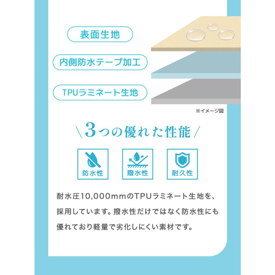 耐水圧5000〜10000mmの高い防水力に、レインポンチョのサッと羽織れる手軽さもプラス。