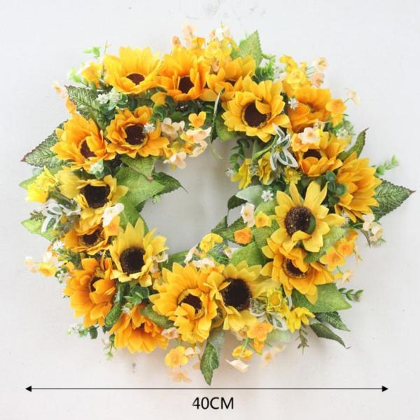 手作りの人工ヒマワリカボチャプリムローズリースドアデコレーション