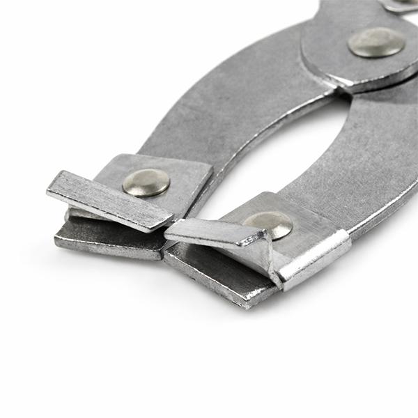 この工具はピストンからピストンリングを脱着する際にピストンリングを押し広げる為の専用プライヤーです。(ピストンリング取外し)