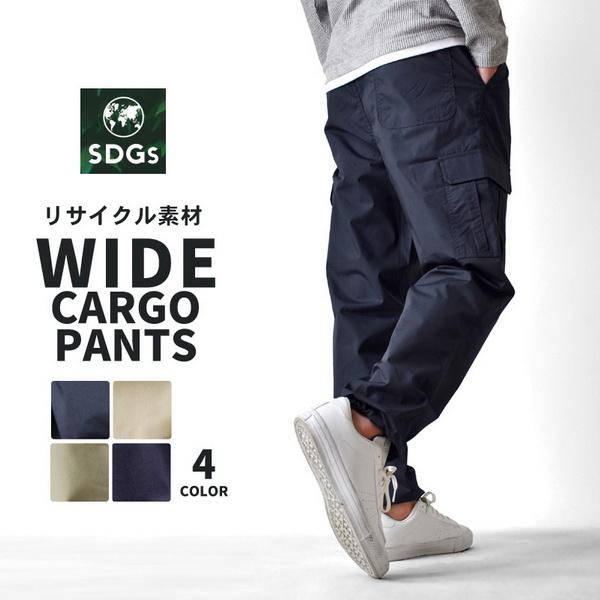 通常であれば焼却破棄される残反を活用し、新しく生まれ変わったカーゴパンツ。ワイドシルエット、テーパードライン。裾口はヒモ付き。Tシャツやスウェットなどトップスとの相性も良くオールシーズン活躍するアイテム。※こちらの商品は1点までのご注文の場合、ゆうパケットで発送させて頂きます。お届け日時はご指定頂けません。複数点購入・代引決済のご注文は宅配便での発送となります。