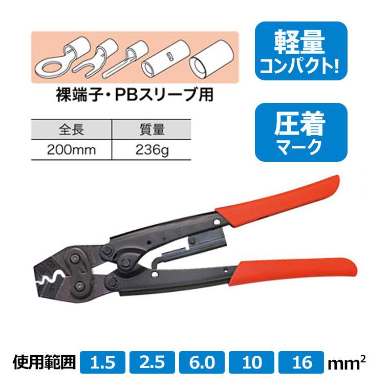 ・商品名:圧着スリーブ用 圧着ペンチ・サイズ : 全長約27cm・1.5mm・2.5mm・6.0mm・10mm・16mmまで対応。・型番: HS-16・リリーサー付※メール便(送料無料・最短翌日お届け)での発送となります。 爆買