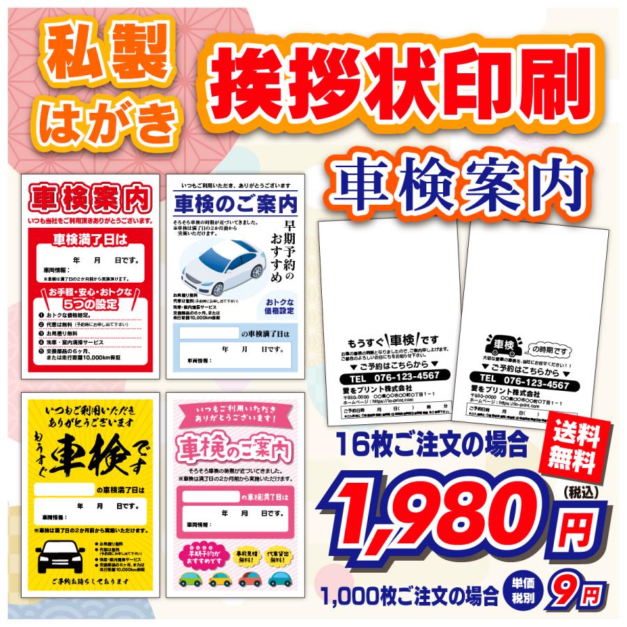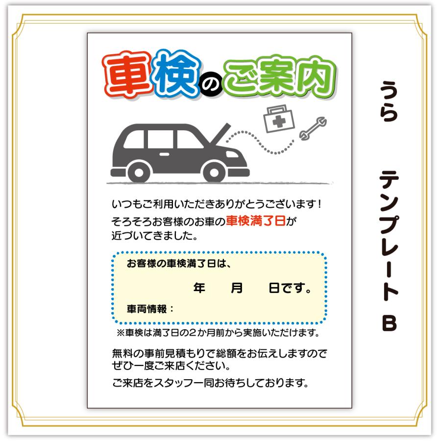 車の車検、定期点検、オイル交換の案内に使用できる案内状です。