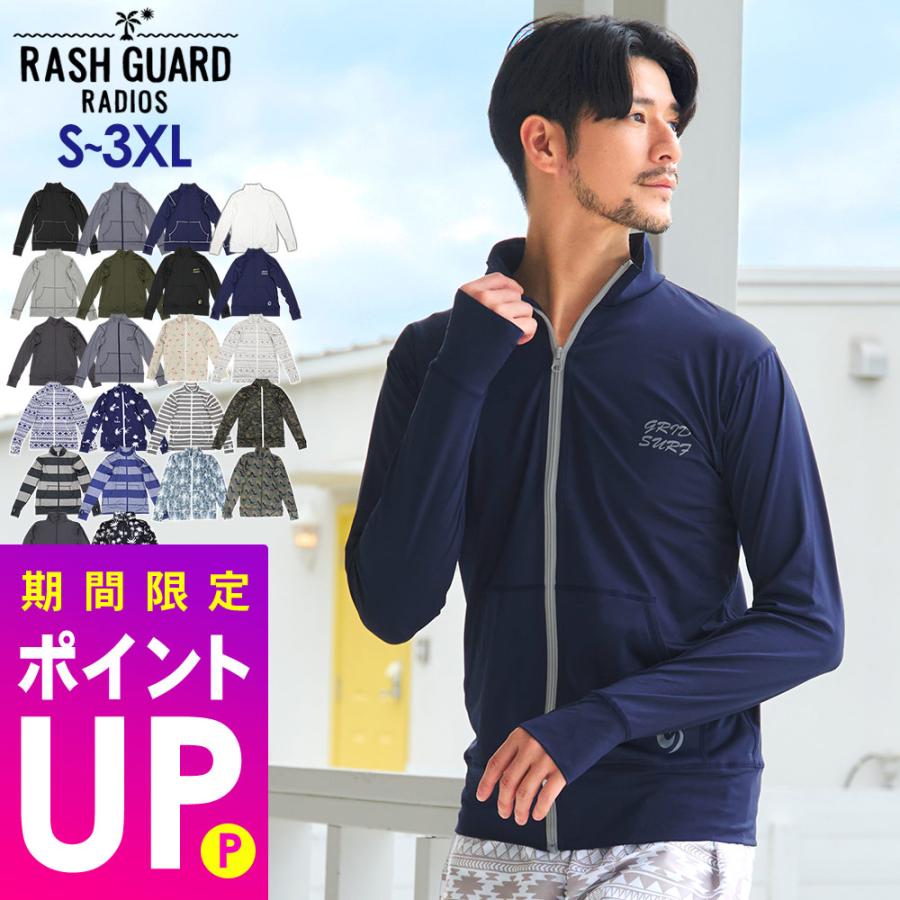 GRID SURF ラッシュガード ジップアップ メンズ 長袖 S〜3XL 日本規格 スタンドカラー 水陸両用 UPF50+ 紫外線対策