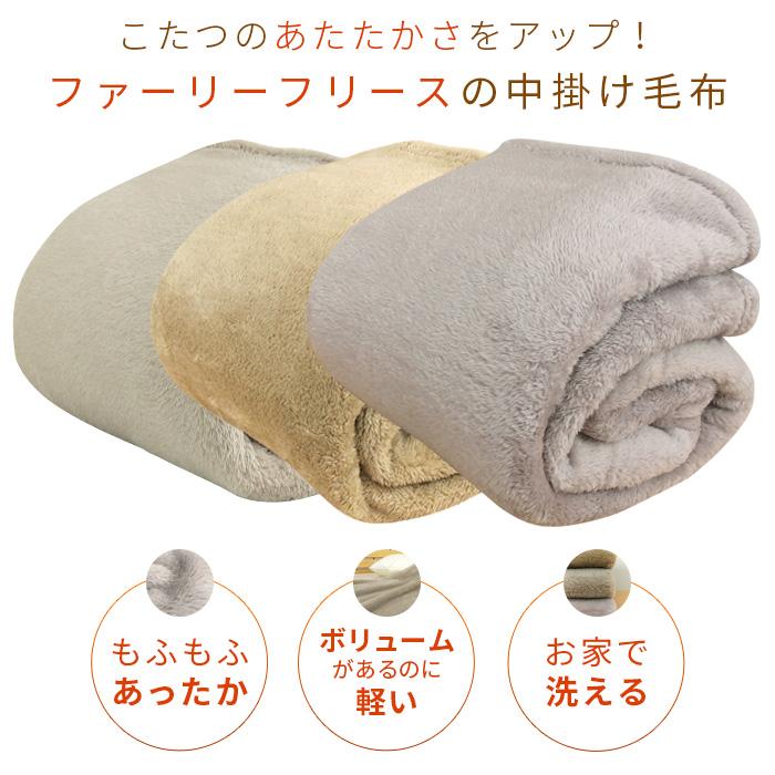 こたつ掛け布団の上に掛けてこたつカバー、毛布・ベッドカバー・ソファカバーになど他にもマルチに活躍してくれる便利な中掛け毛布です。