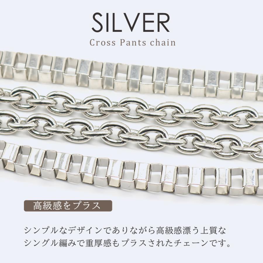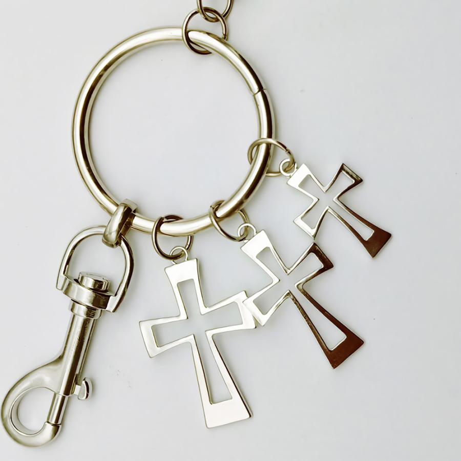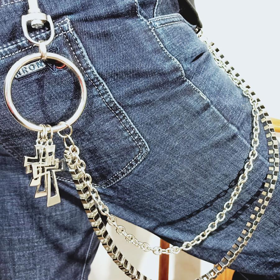2種類のチェーンと大きさが異なる3つの十字架デザインが格好良いパンツチェーンです。