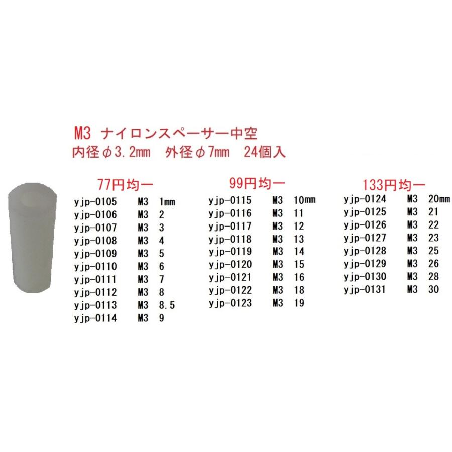 M5プラスチックスペーサーyjp-0172 高さ3mm0173 40174 50175 70176 80177 90178 100179 120180 150181 180182 200183 25入数24写真共通