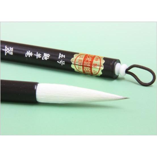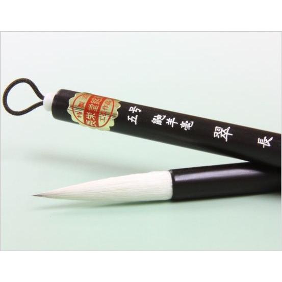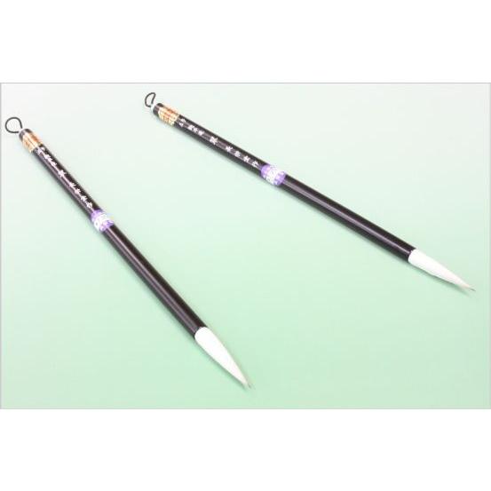 良質のイタチ毛を穂先の中心に、そのまわりを極上の羊毛でまわしました。穂先がよく効き繊細な細い線を書くことができます。半紙4文字〜6文字、仮名条幅などに最適です。柔らかさとコシのバランスが絶妙で、初心者の方でも扱いやすいです。